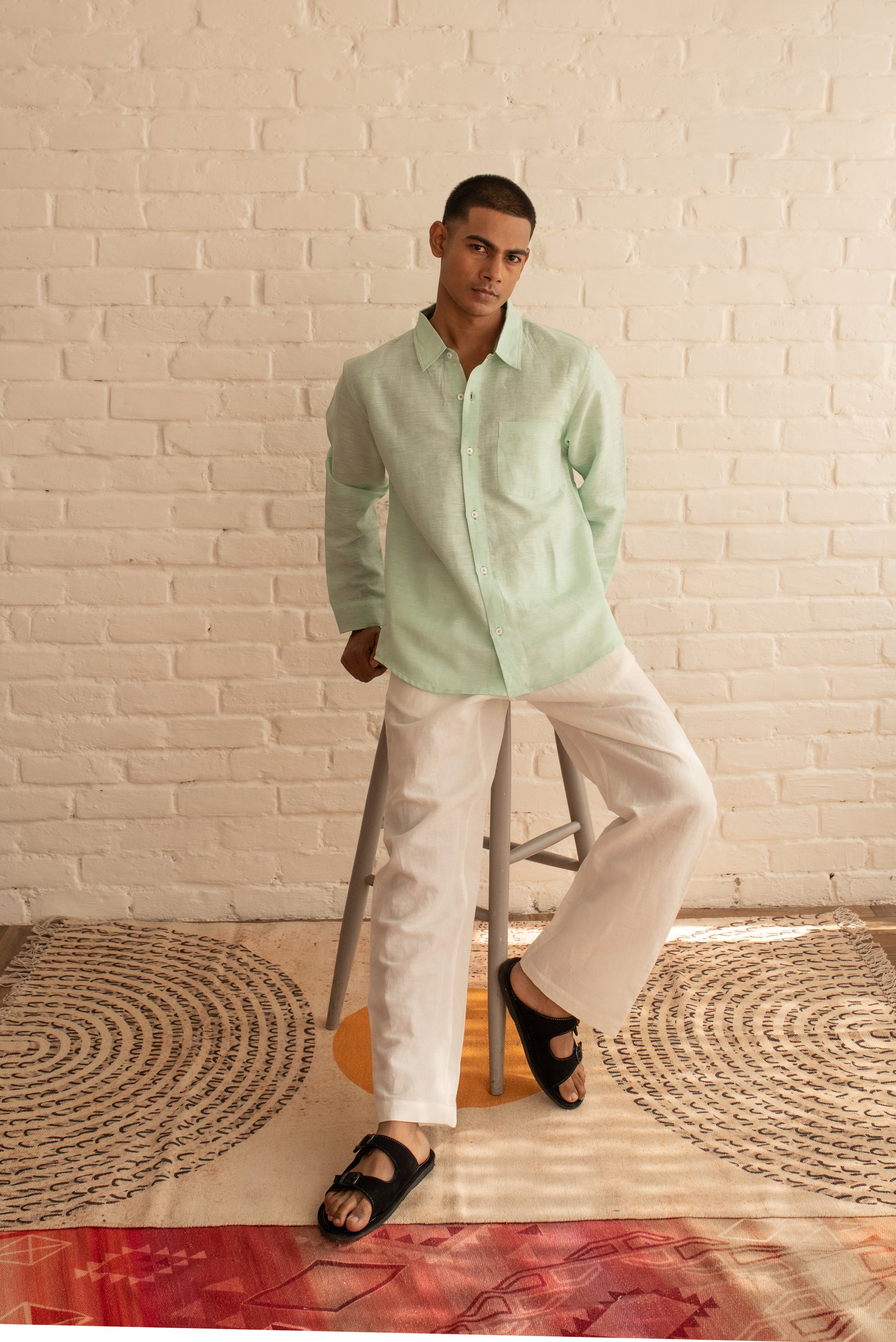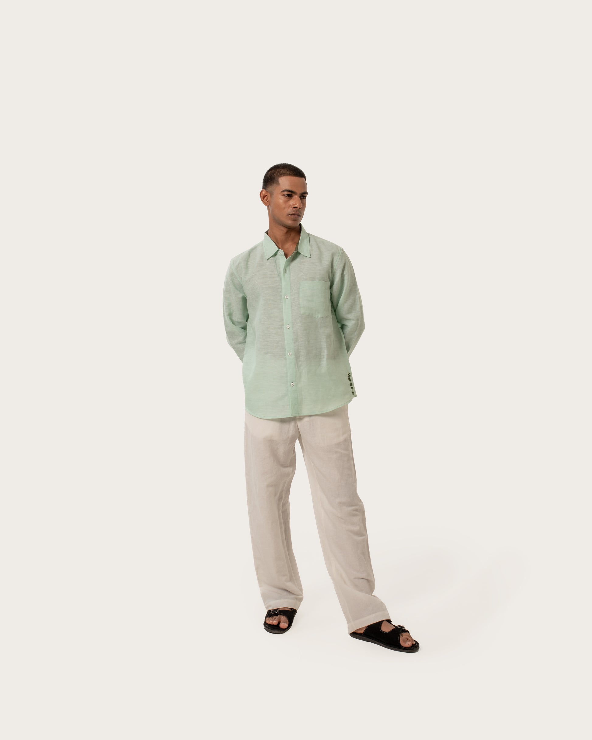 LINEN HAND EMBROIDERED LONG SLEEVE SHIRT