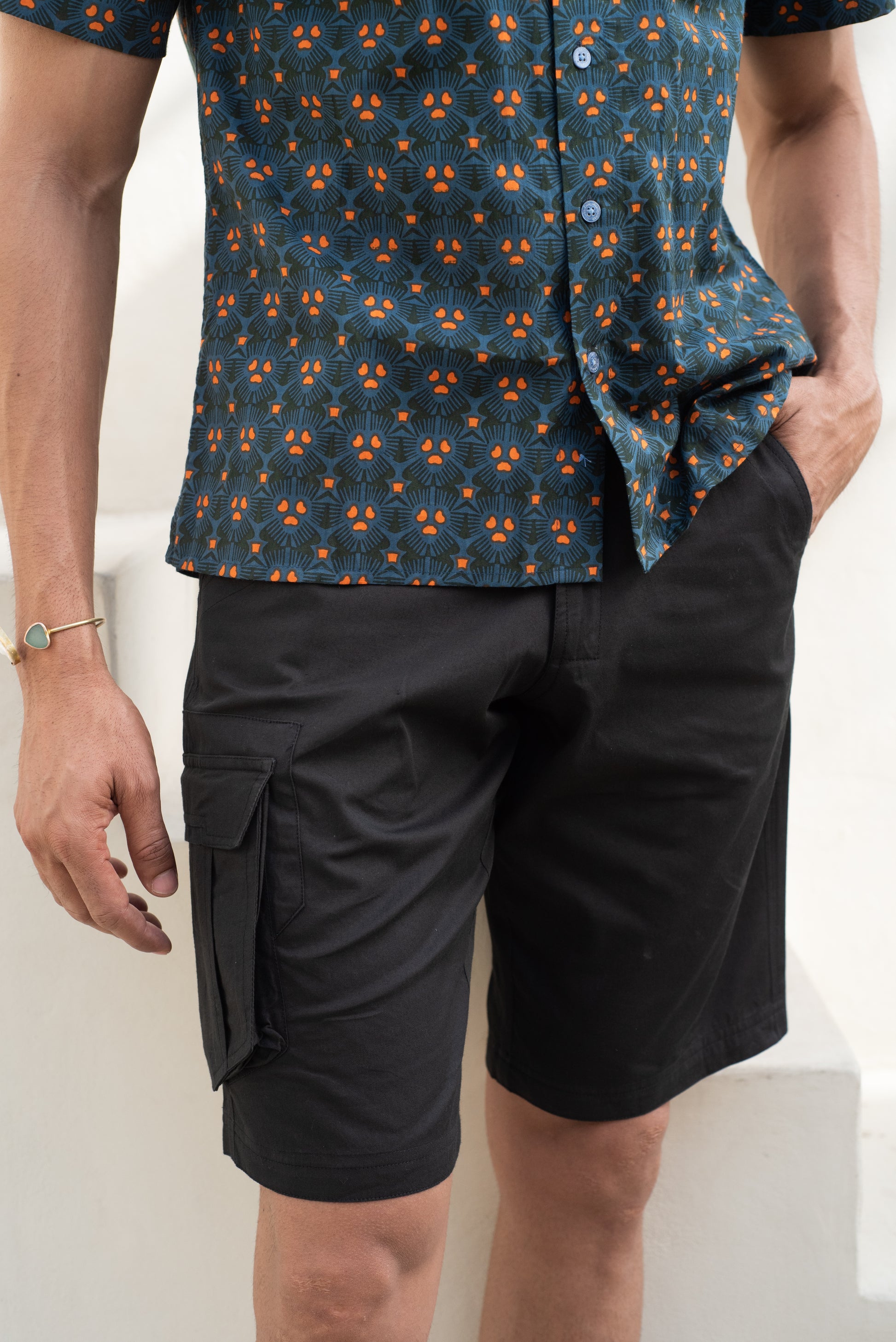 This short is dyed and printed by hand using traditional “HAND SCREEN PRINT” TECHNIQUE.