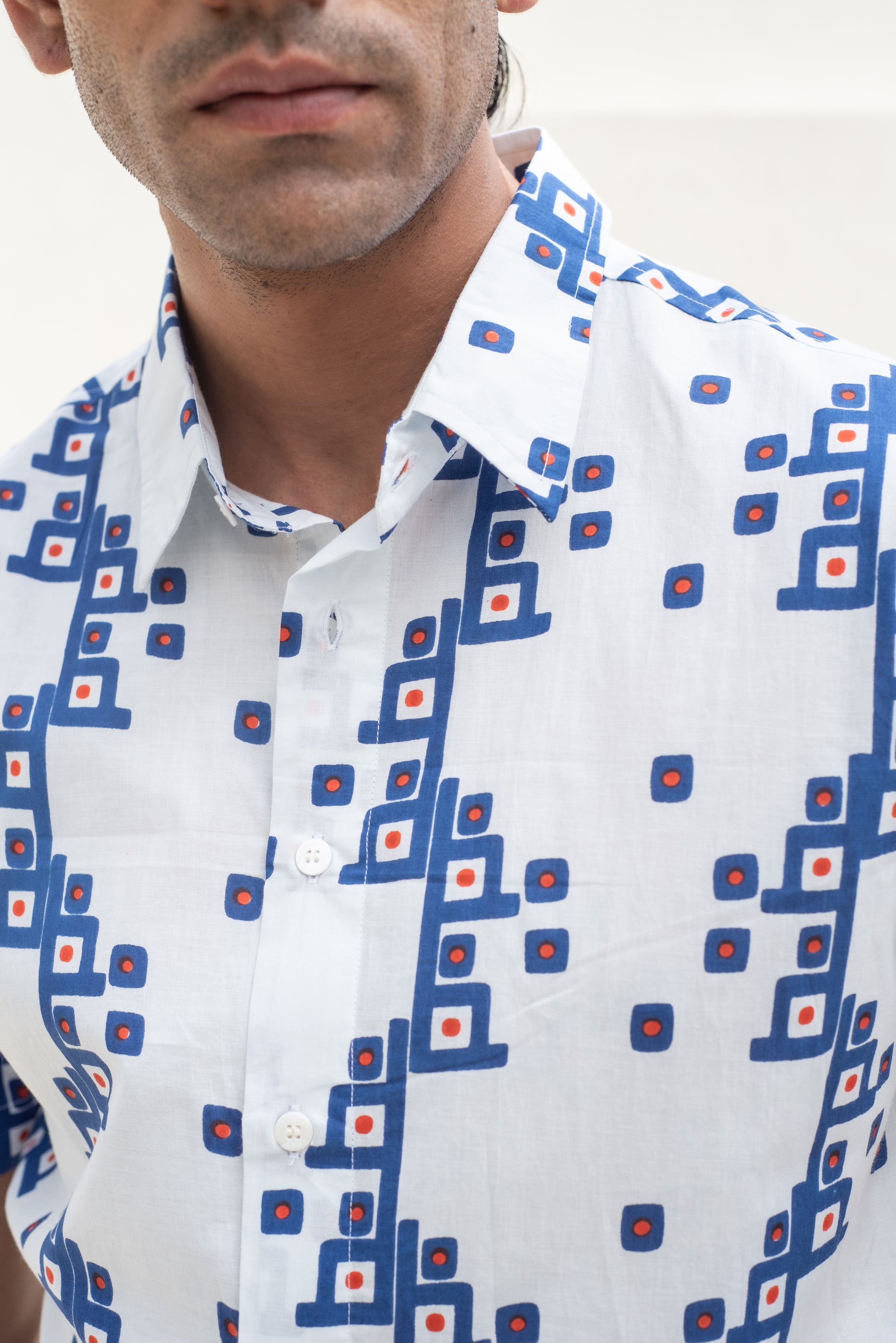 This shirt is dyed and printed by hand using traditional “HAND SCREEN PRINT” TECHNIQUE.