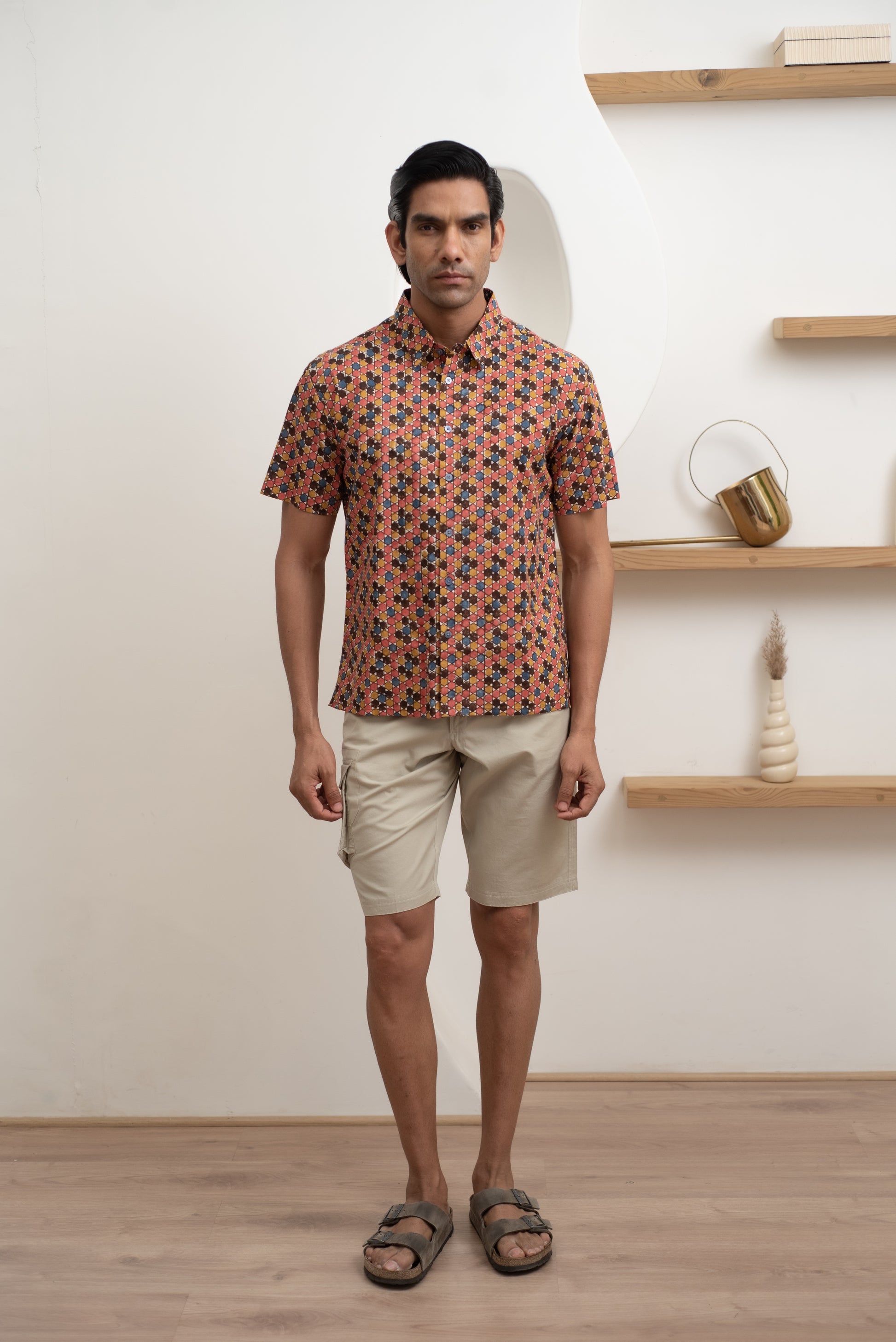 This shirt is dyed and printed by hand using traditional “BLOCK PRINT” TECHNIQUE.