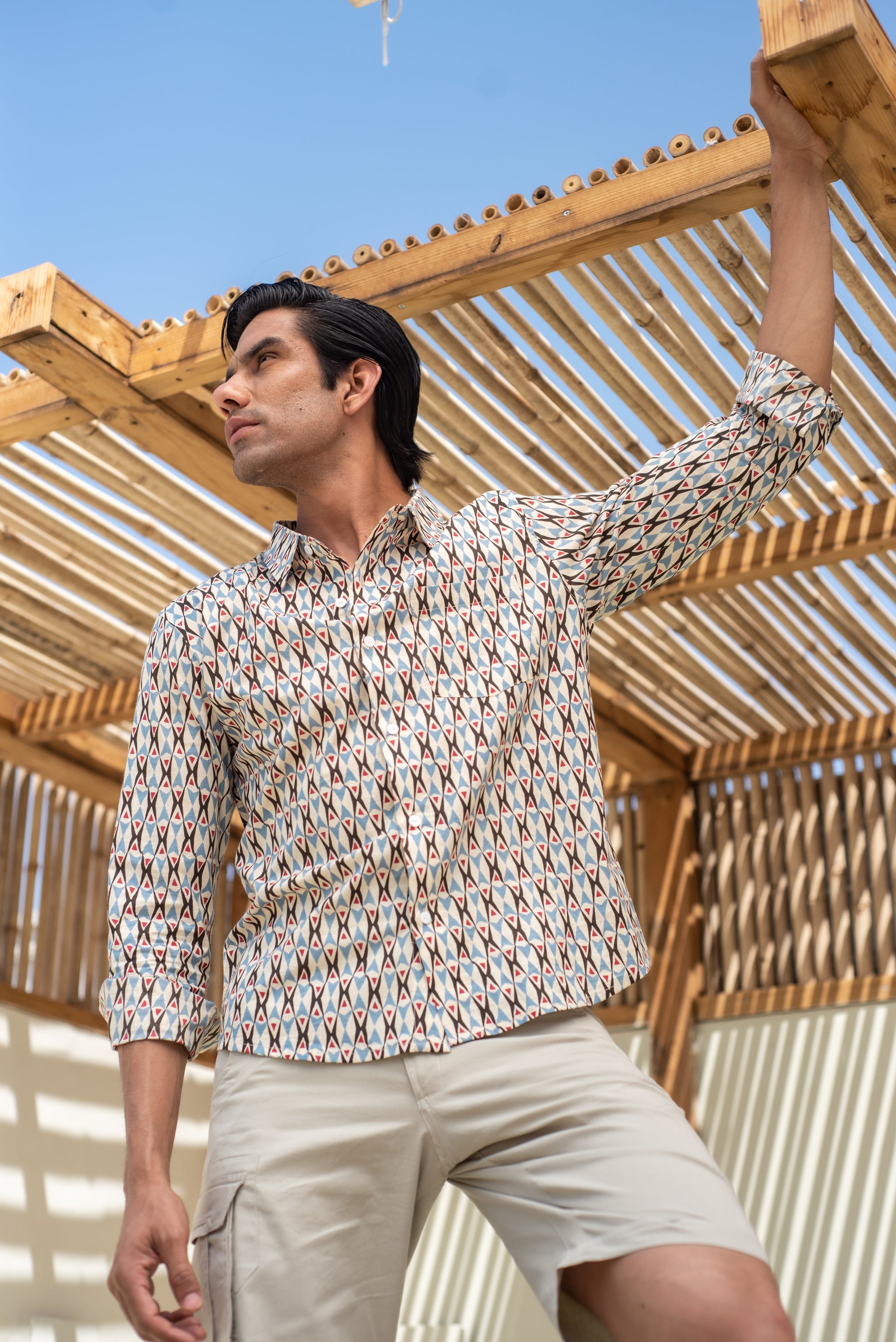 This shirt is dyed and printed by hand using traditional “HAND SCREEN PRINT” TECHNIQUE. No two shirts are the same.