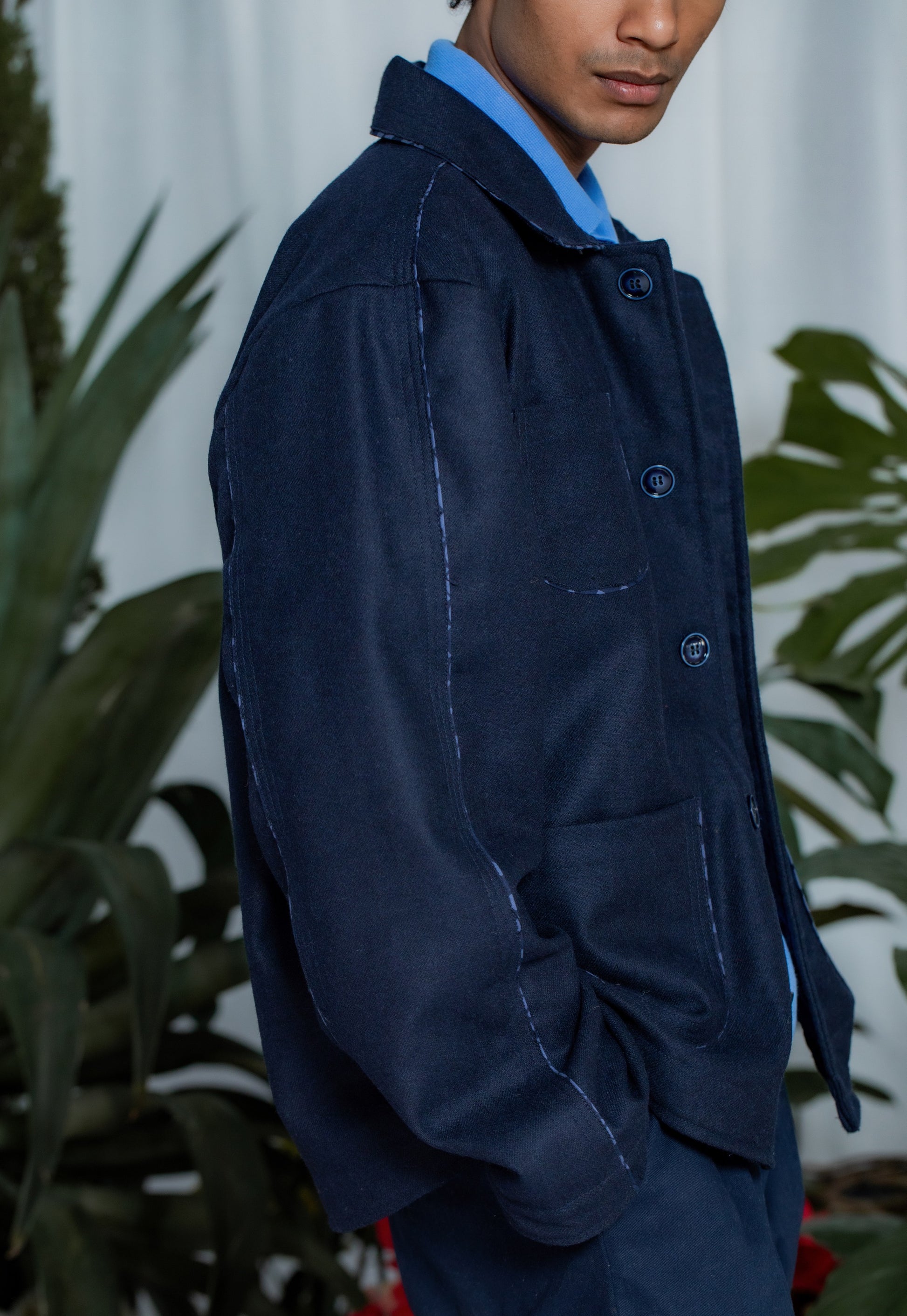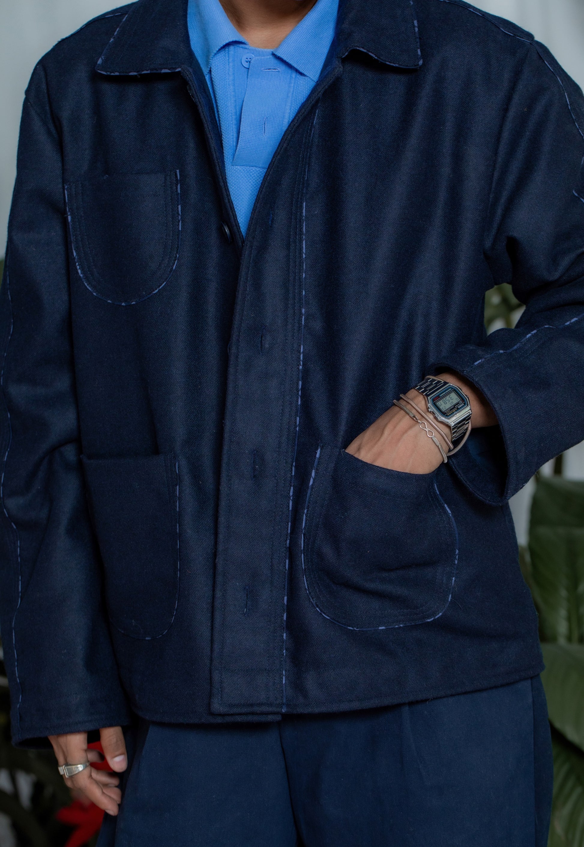 Kutch Wool Jacket-Navy Blue