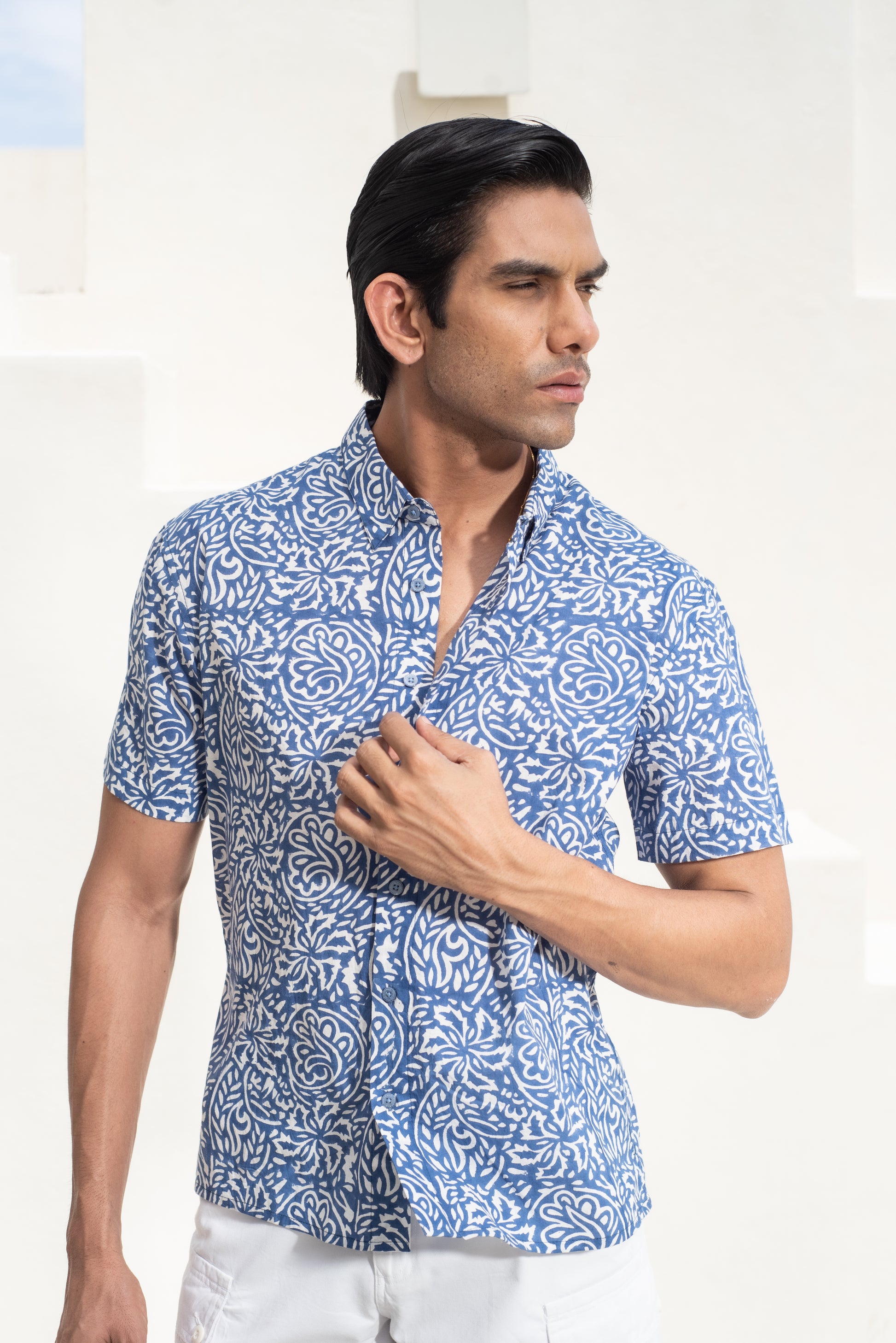 This shirt is dyed and printed by hand using traditional “BLOCK PRINT” TECHNIQUE. No two shirts are the same.
