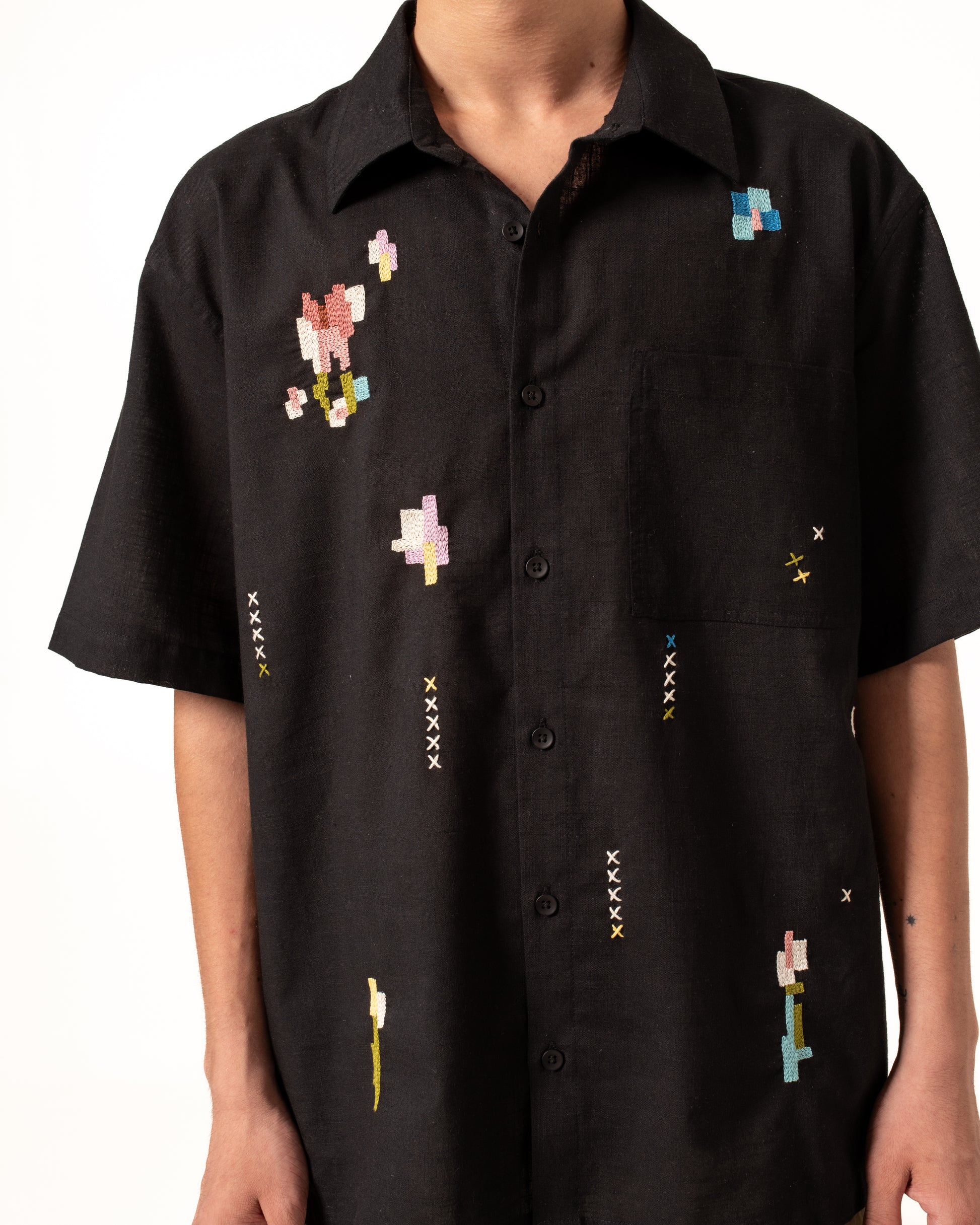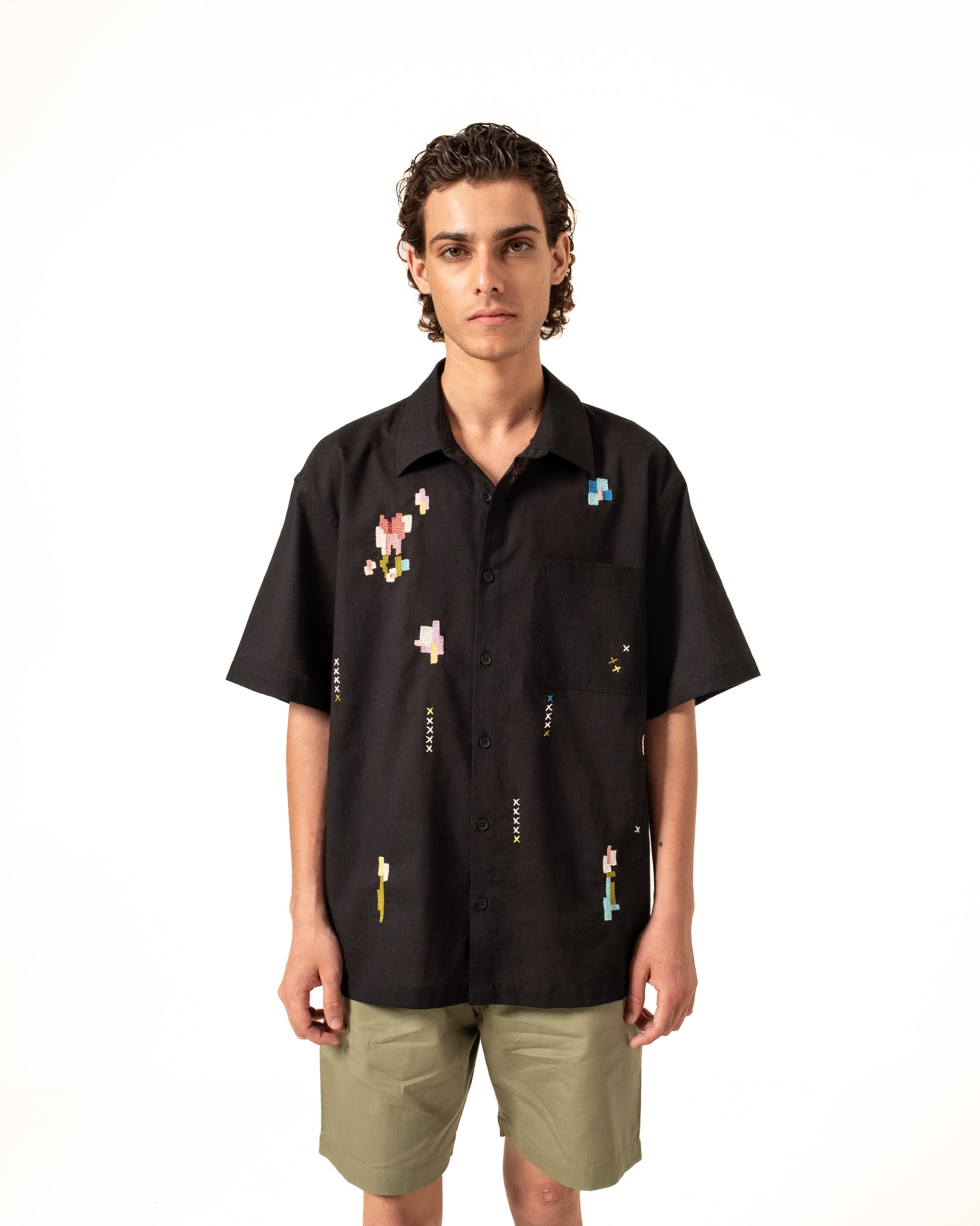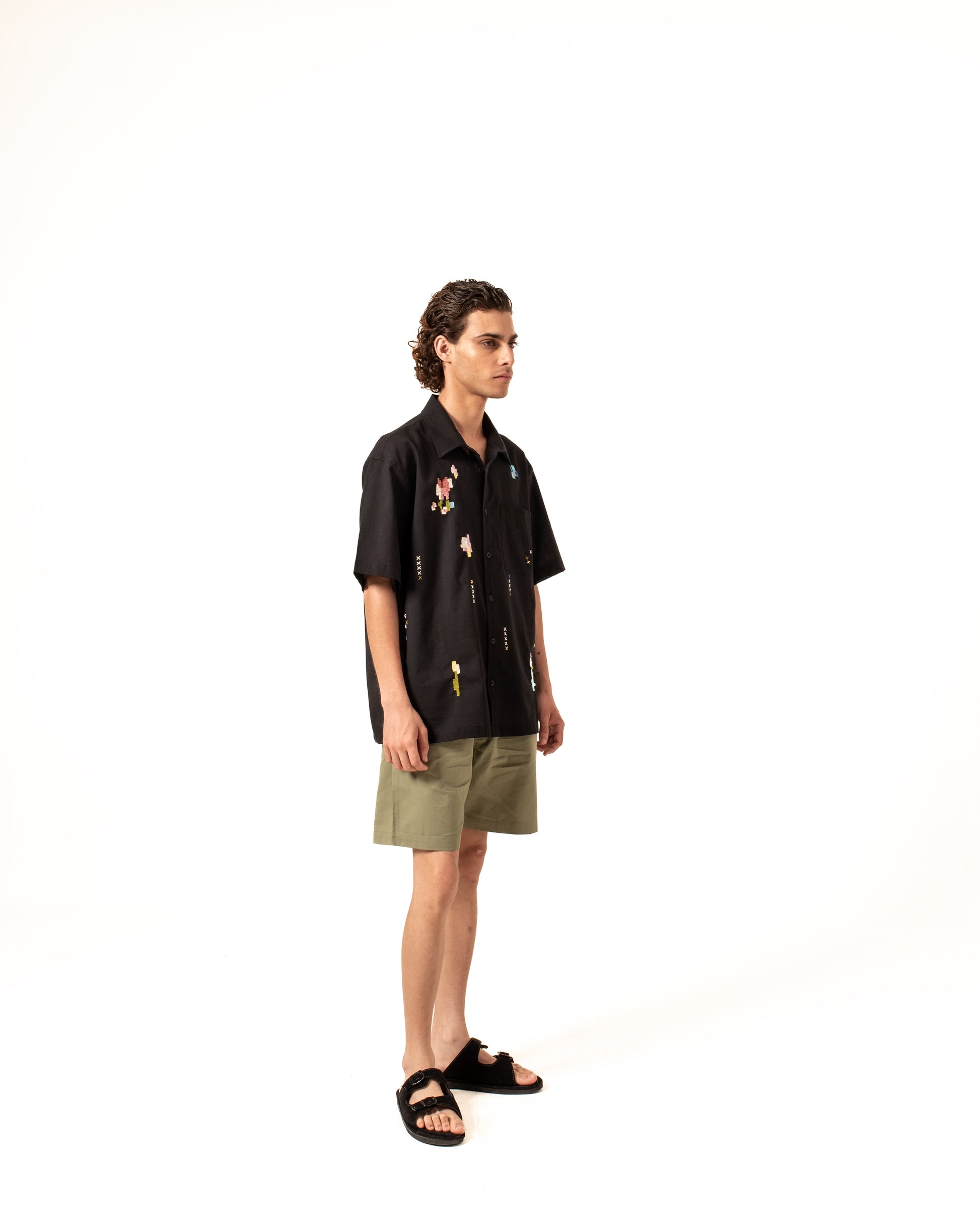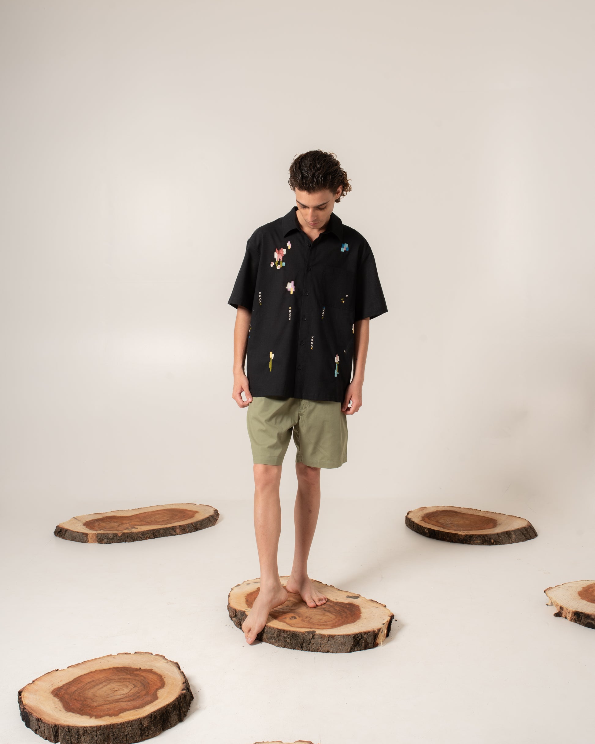 ORGANIC COTTON HAND EMBROIDERED HALF SLEEVE SHIRT