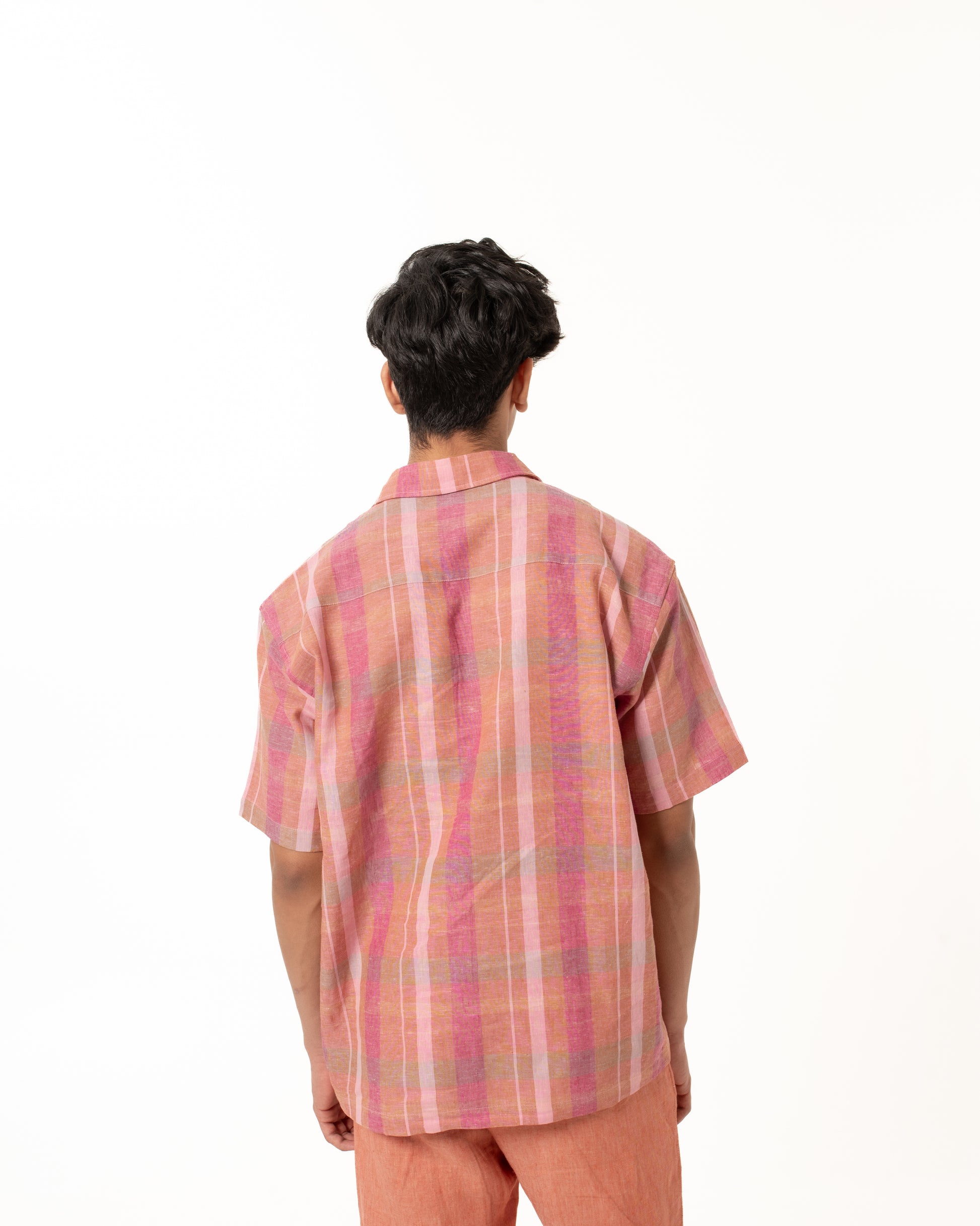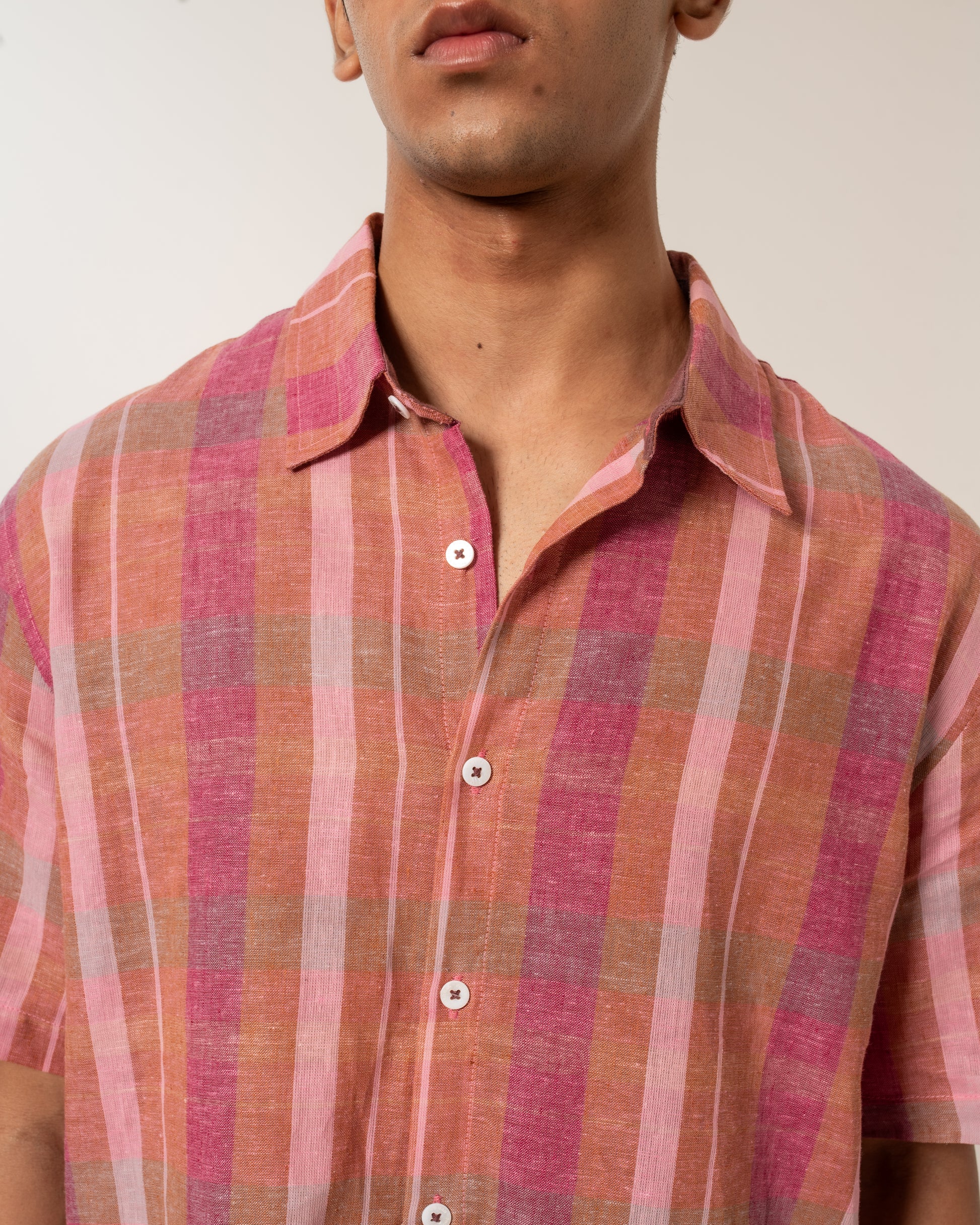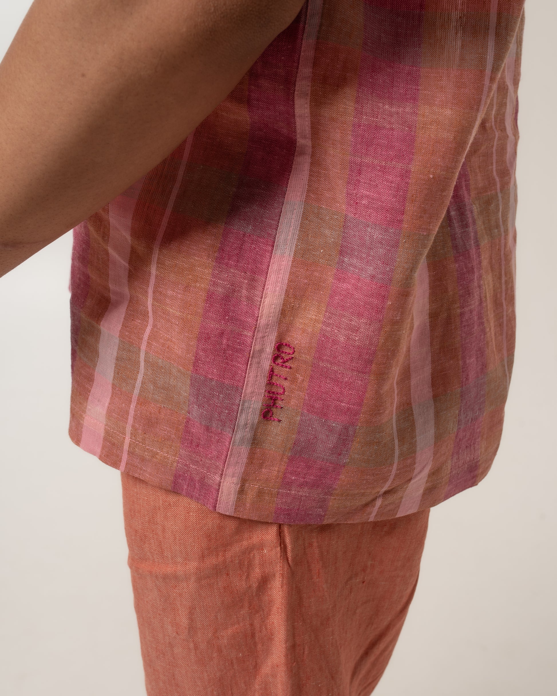 This shirt is made from handwoven linen, woven slowly on traditional looms by skilled weavers. The process—from spinning the yarn to weaving the fabric—takes time and care. Handwoven linen has a soft texture and natural feel, with small irregularities that reflect its handmade nature.