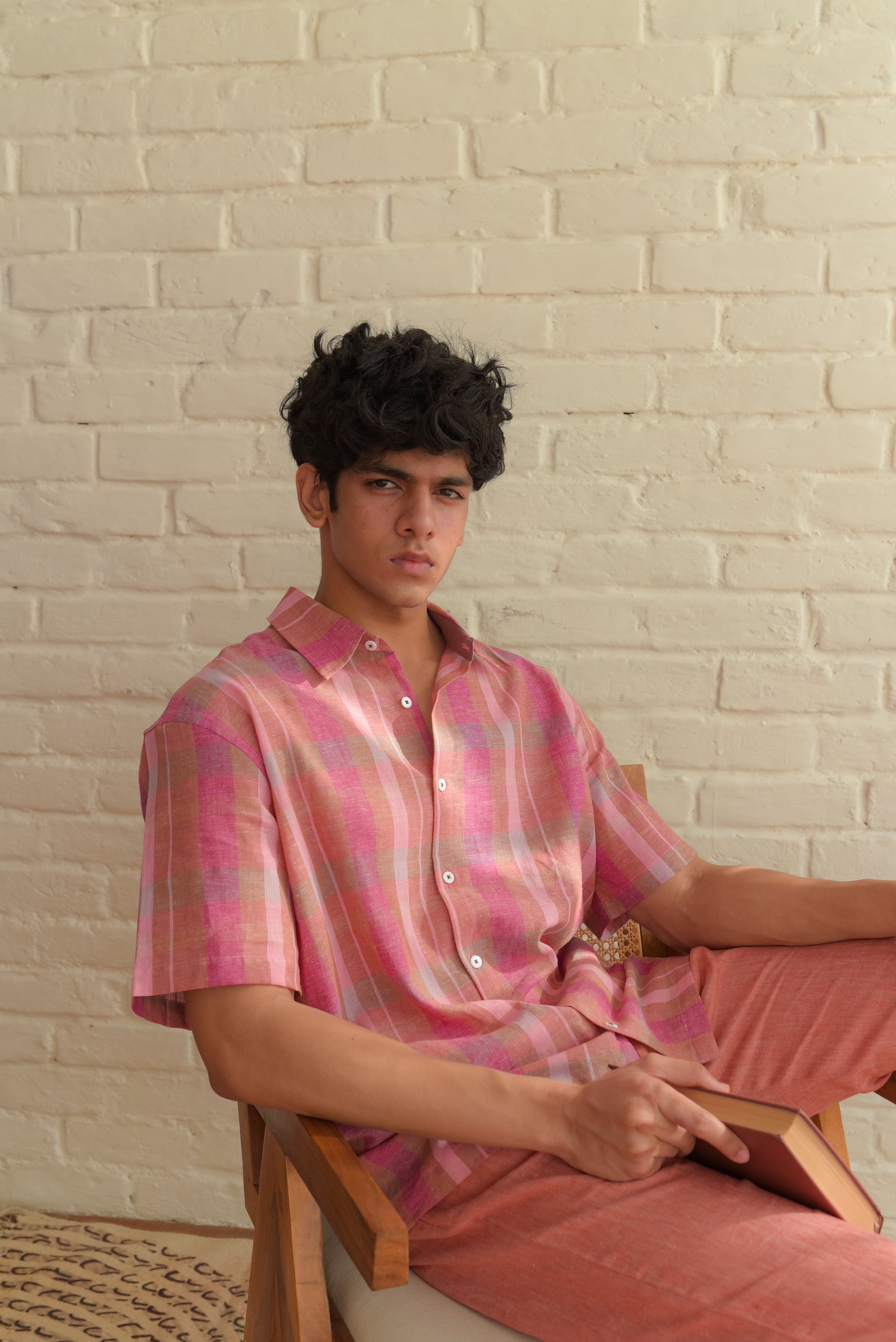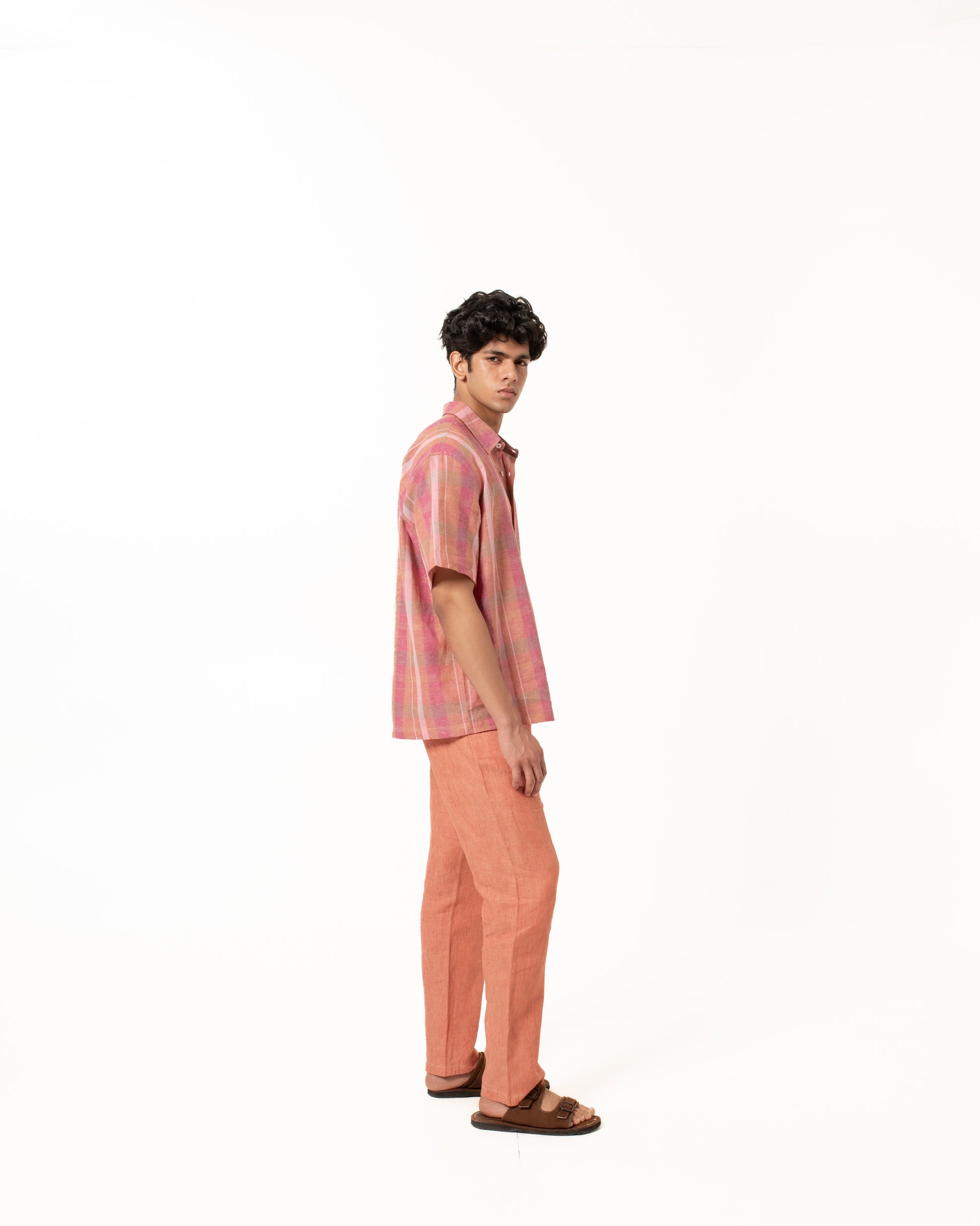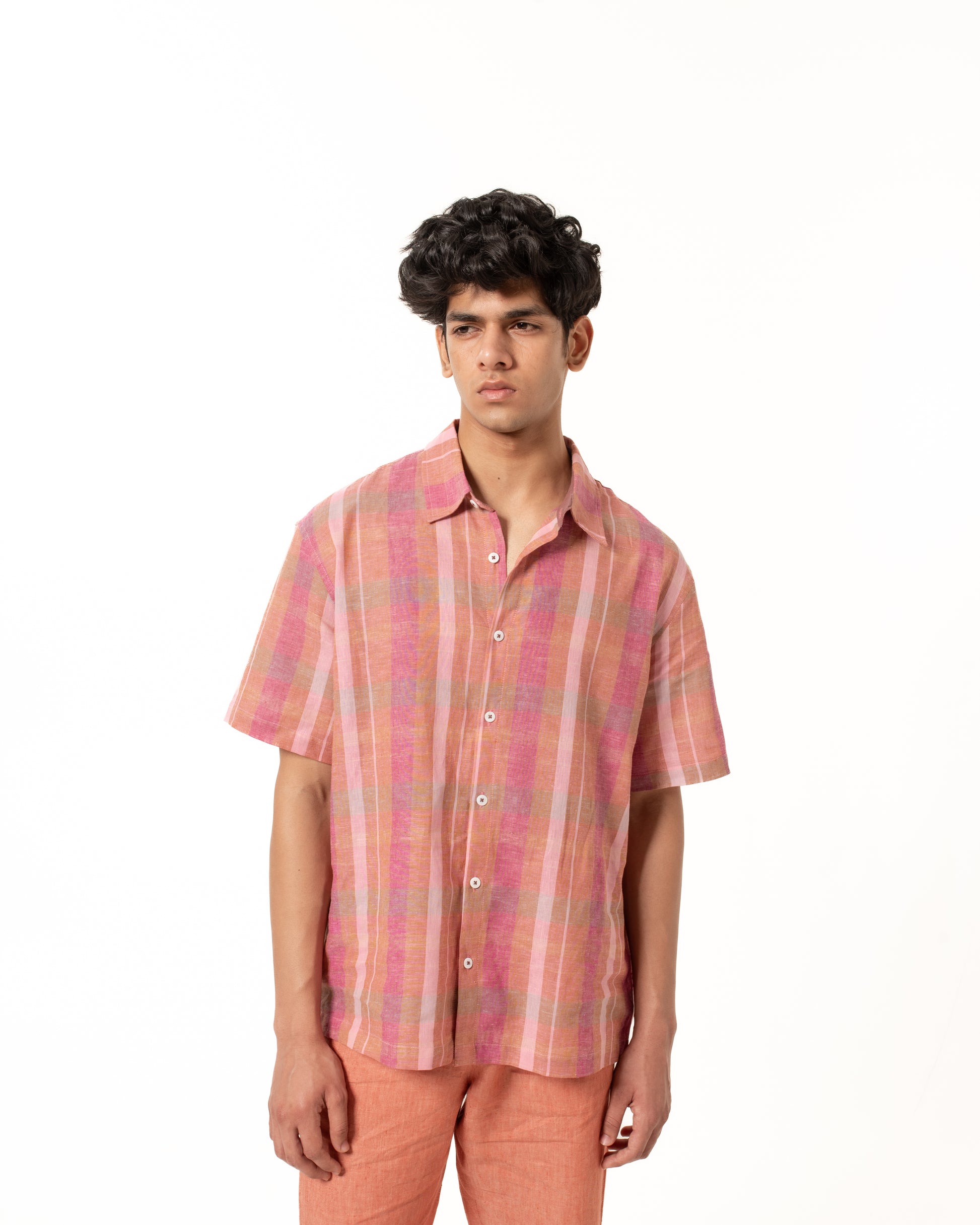 This shirt is made from handwoven linen, woven slowly on traditional looms by skilled weavers. The process—from spinning the yarn to weaving the fabric—takes time and care. Handwoven linen has a soft texture and natural feel, with small irregularities that reflect its handmade nature.