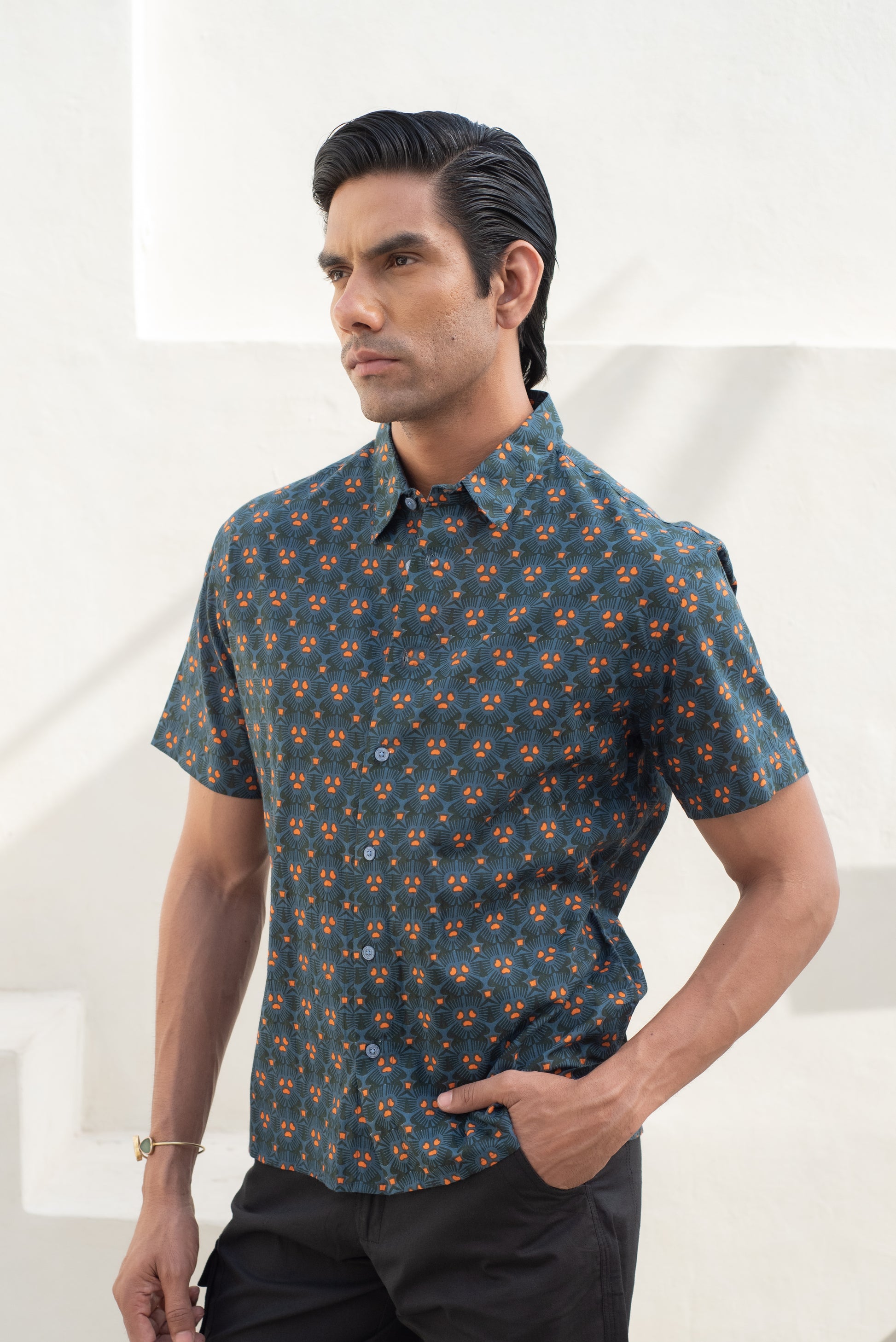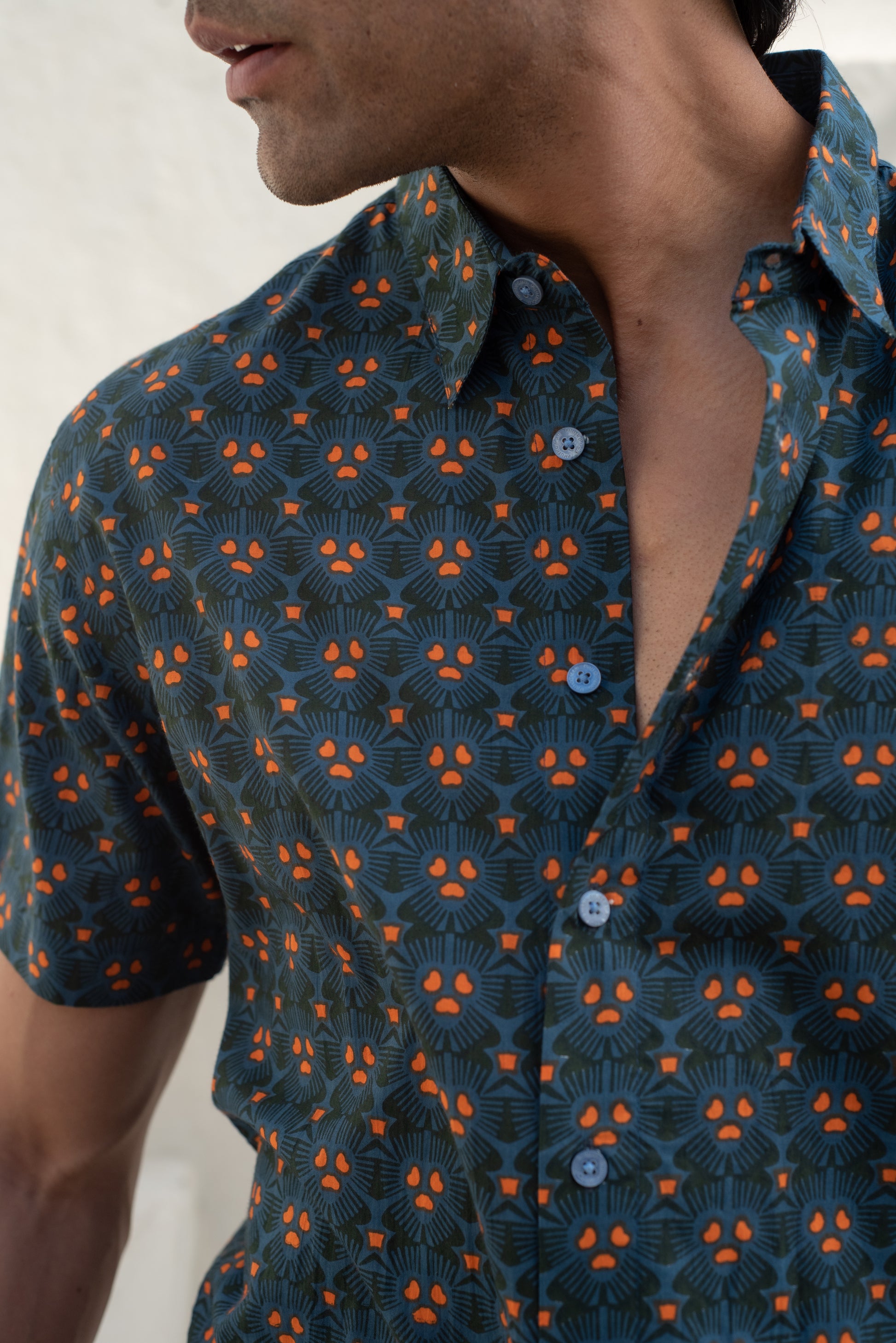 This shirt is dyed and printed by hand using traditional “HAND SCREEN PRINT” TECHNIQUE.