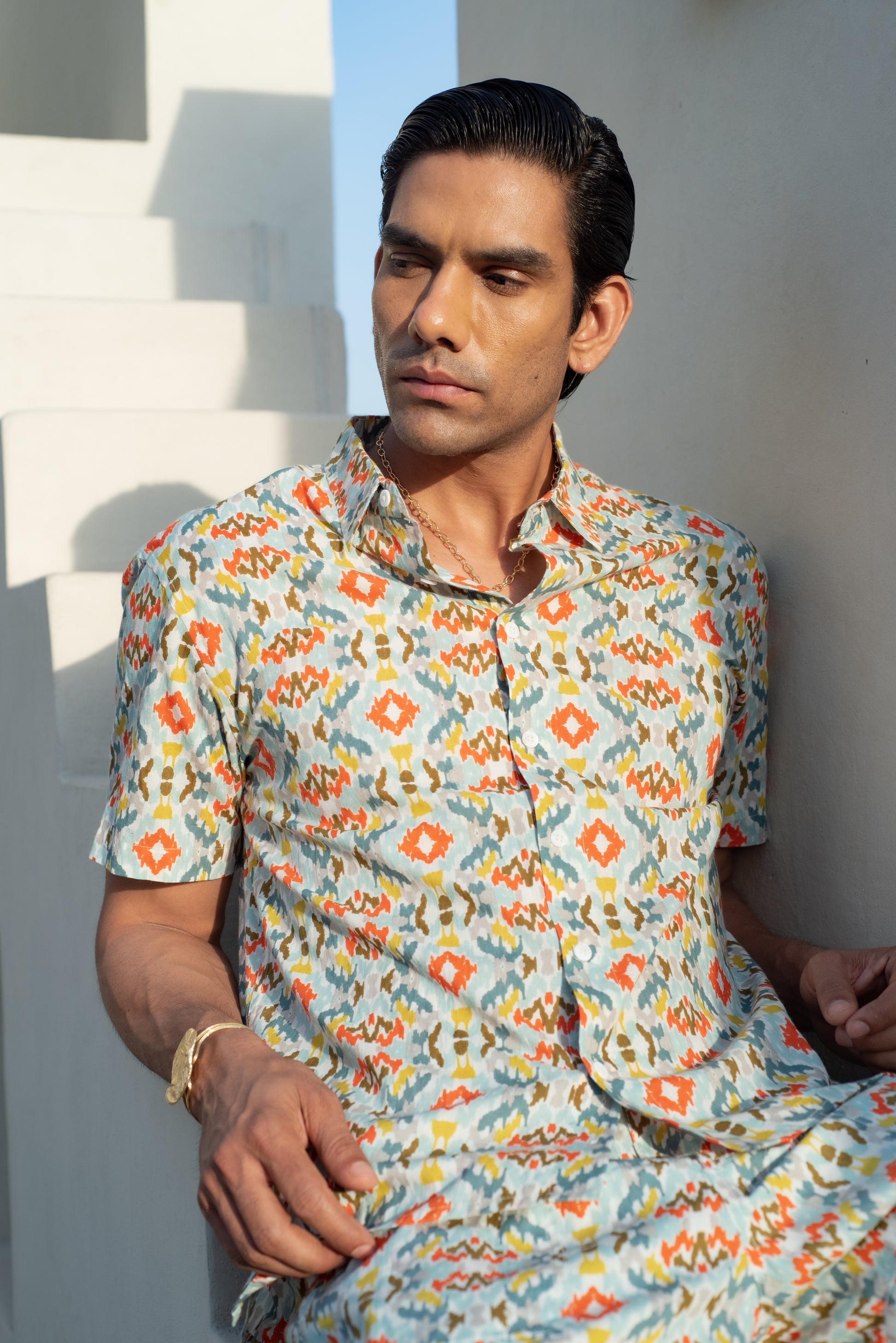 This shirt is dyed and printed by hand using traditional “HAND SCREEN PRINT” TECHNIQUE.