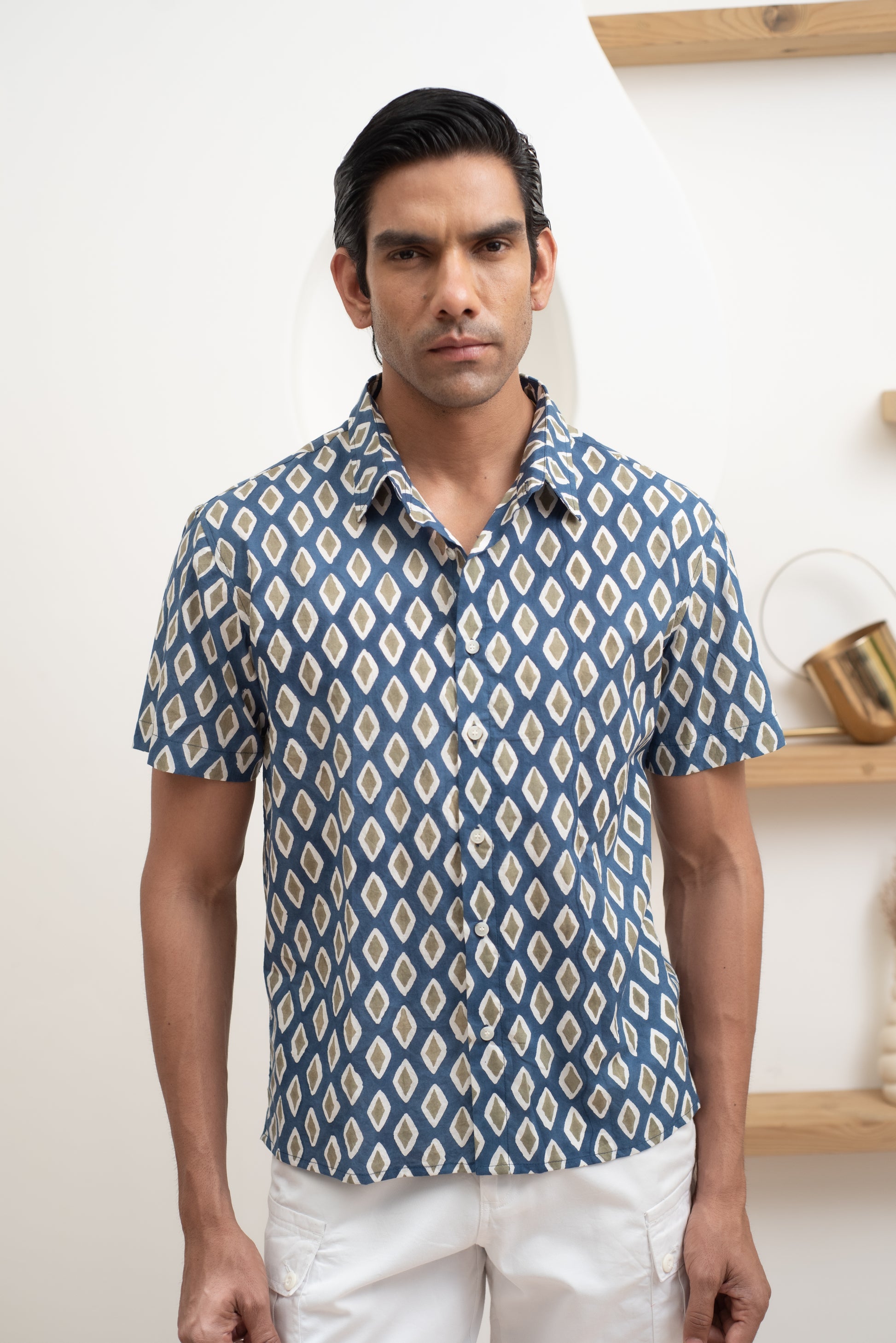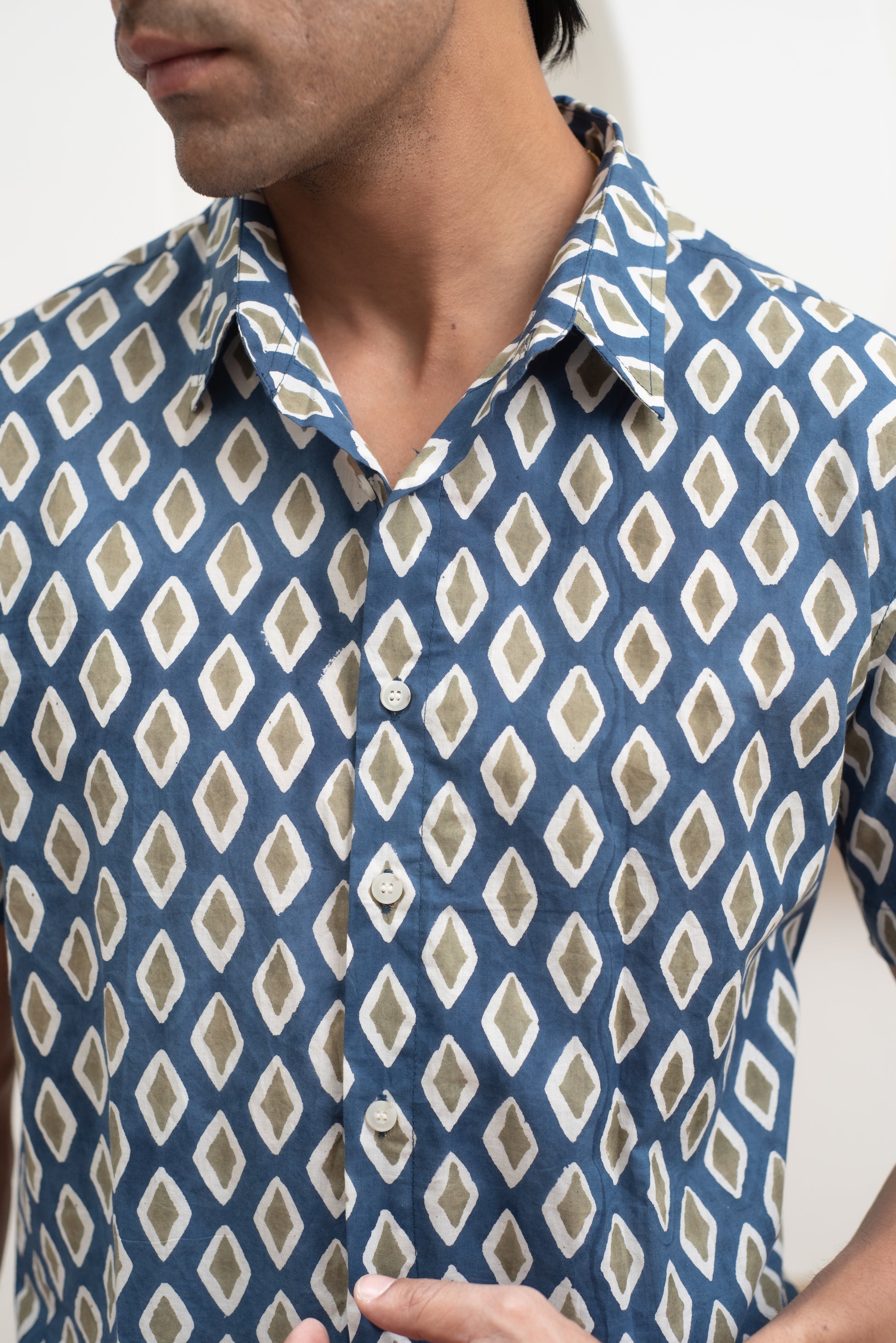This shirt is dyed and printed by hand using traditional “BLOCK PRINT” TECHNIQUE. No two shirts are the same.