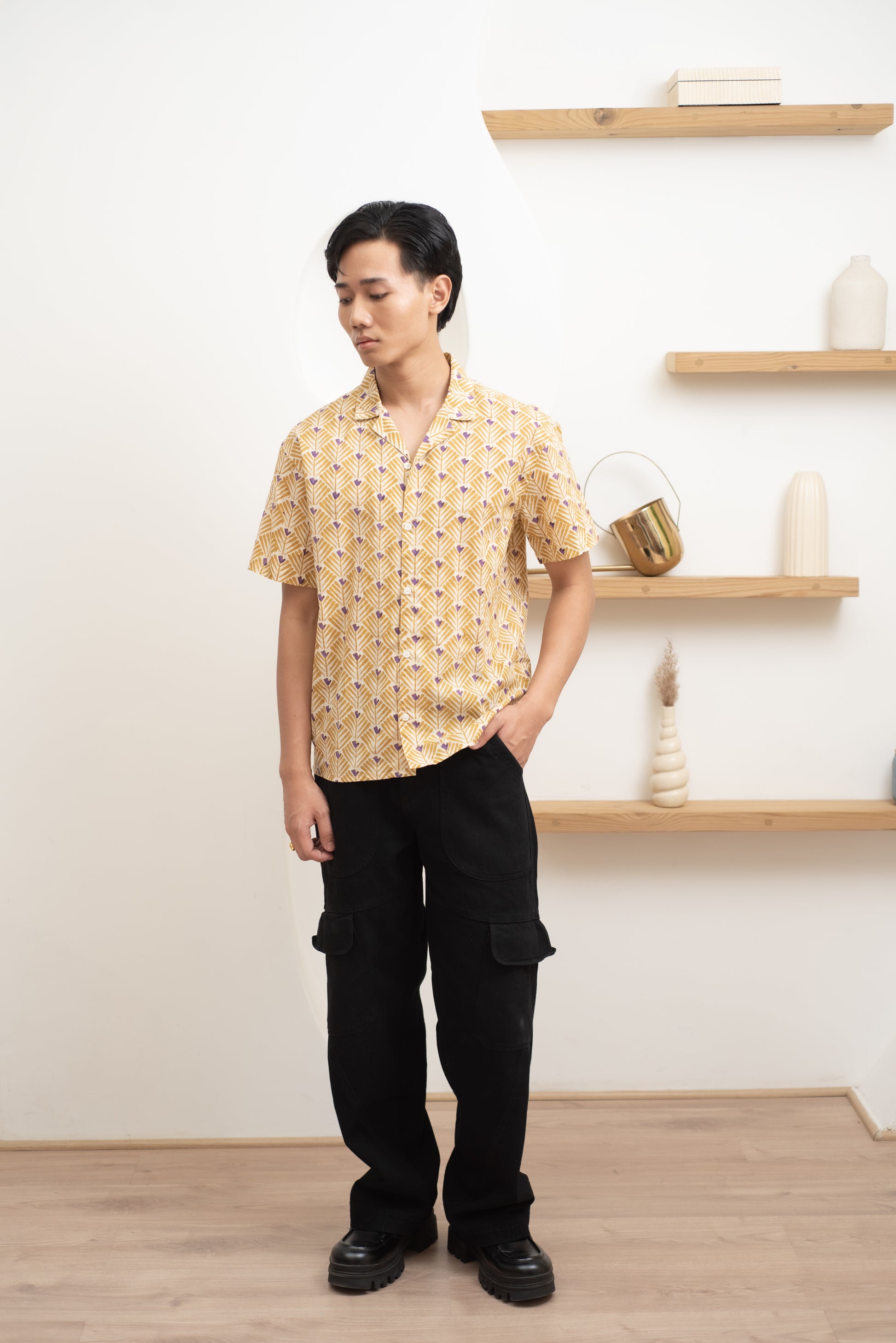 This shirt is dyed and printed by hand using traditional “BLOCK PRINT” TECHNIQUE. No two shirts are the same.