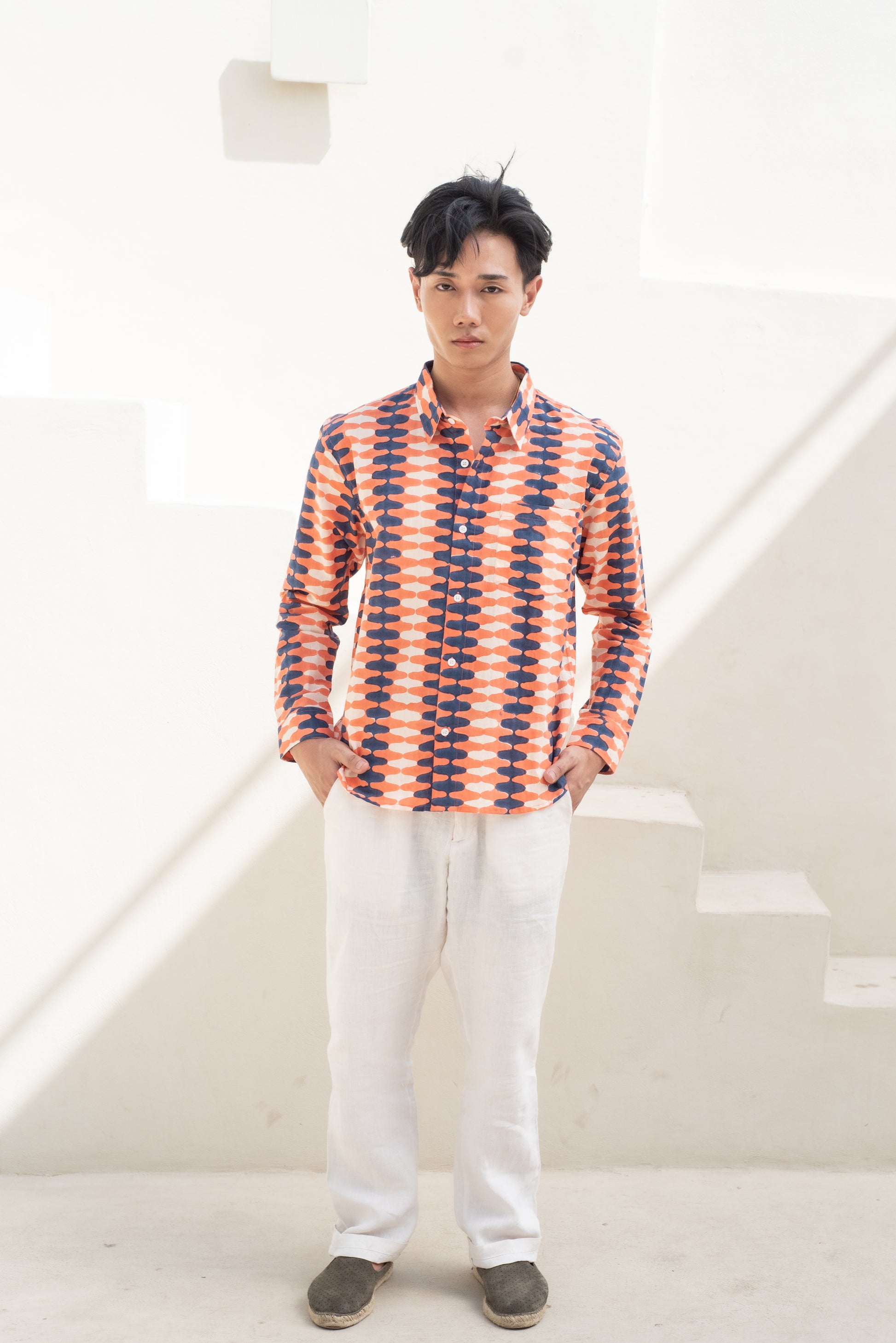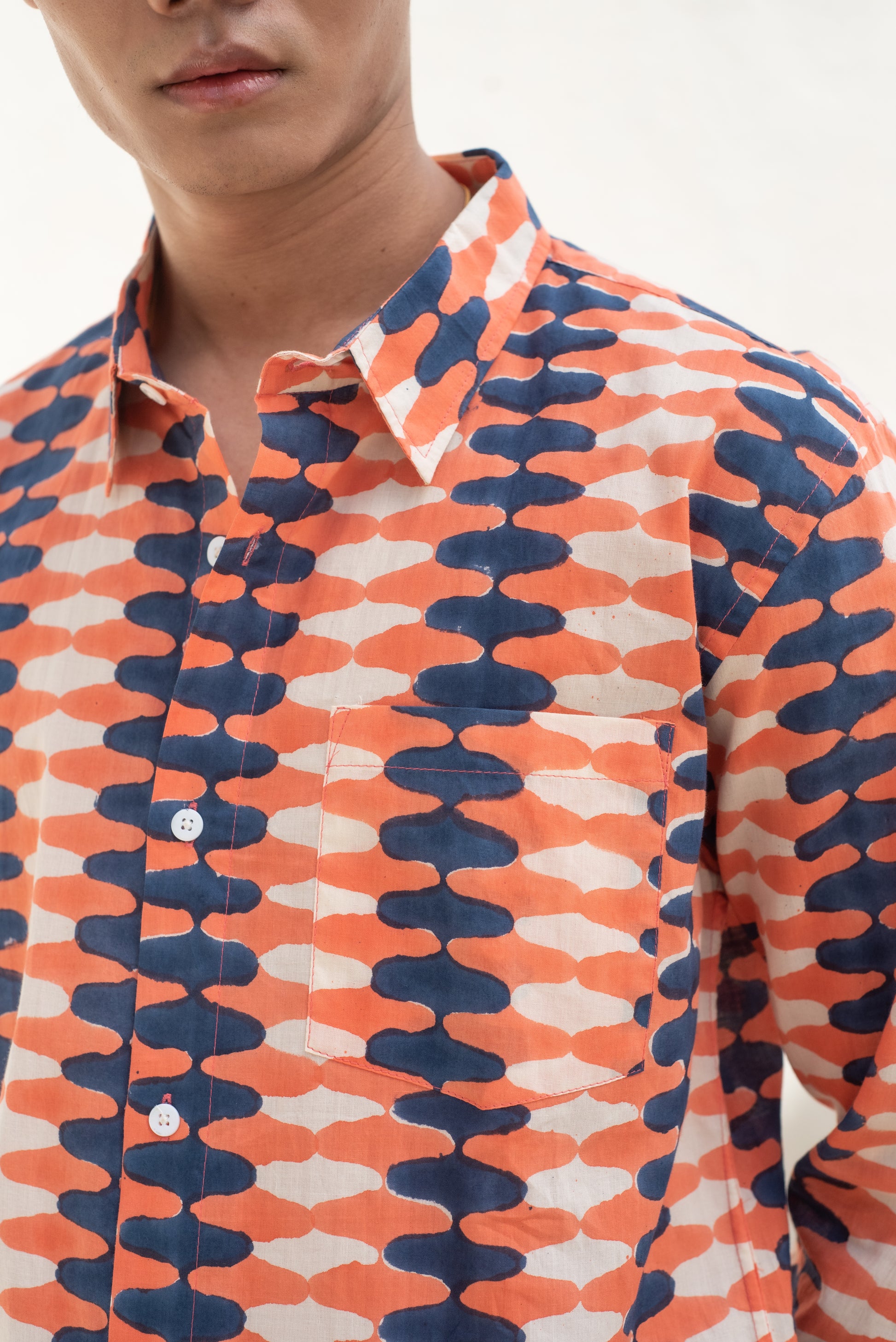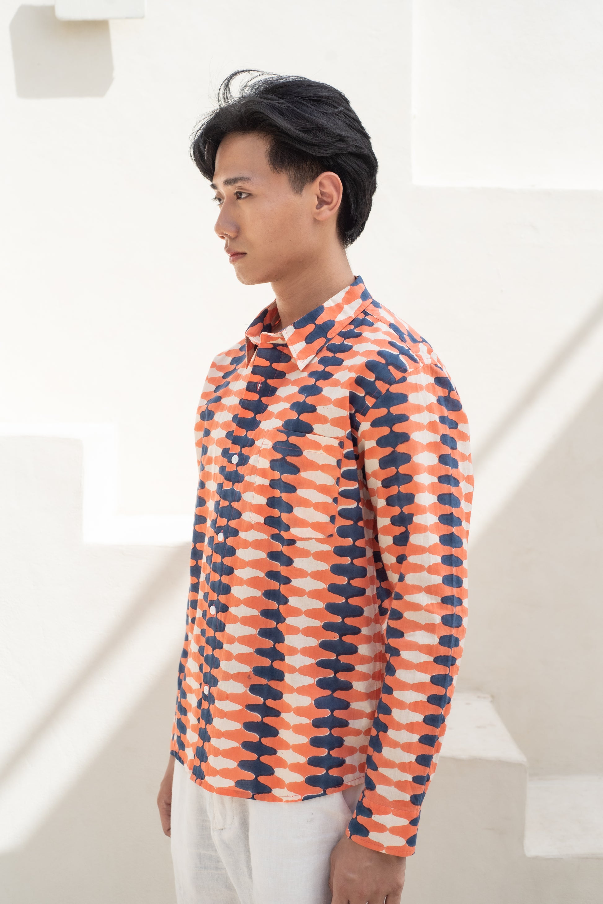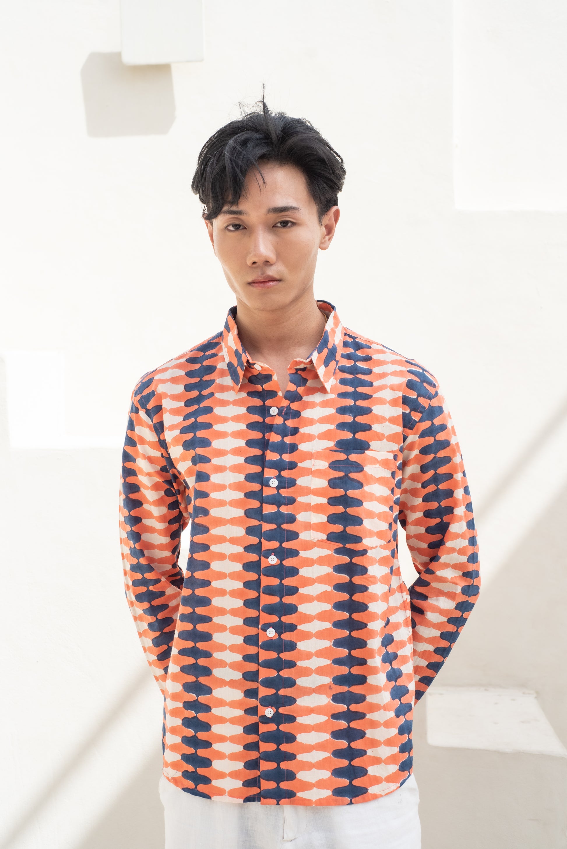 This shirt is dyed and printed by hand using traditional “BLOCK PRINT” TECHNIQUE. No two shirts are the same.