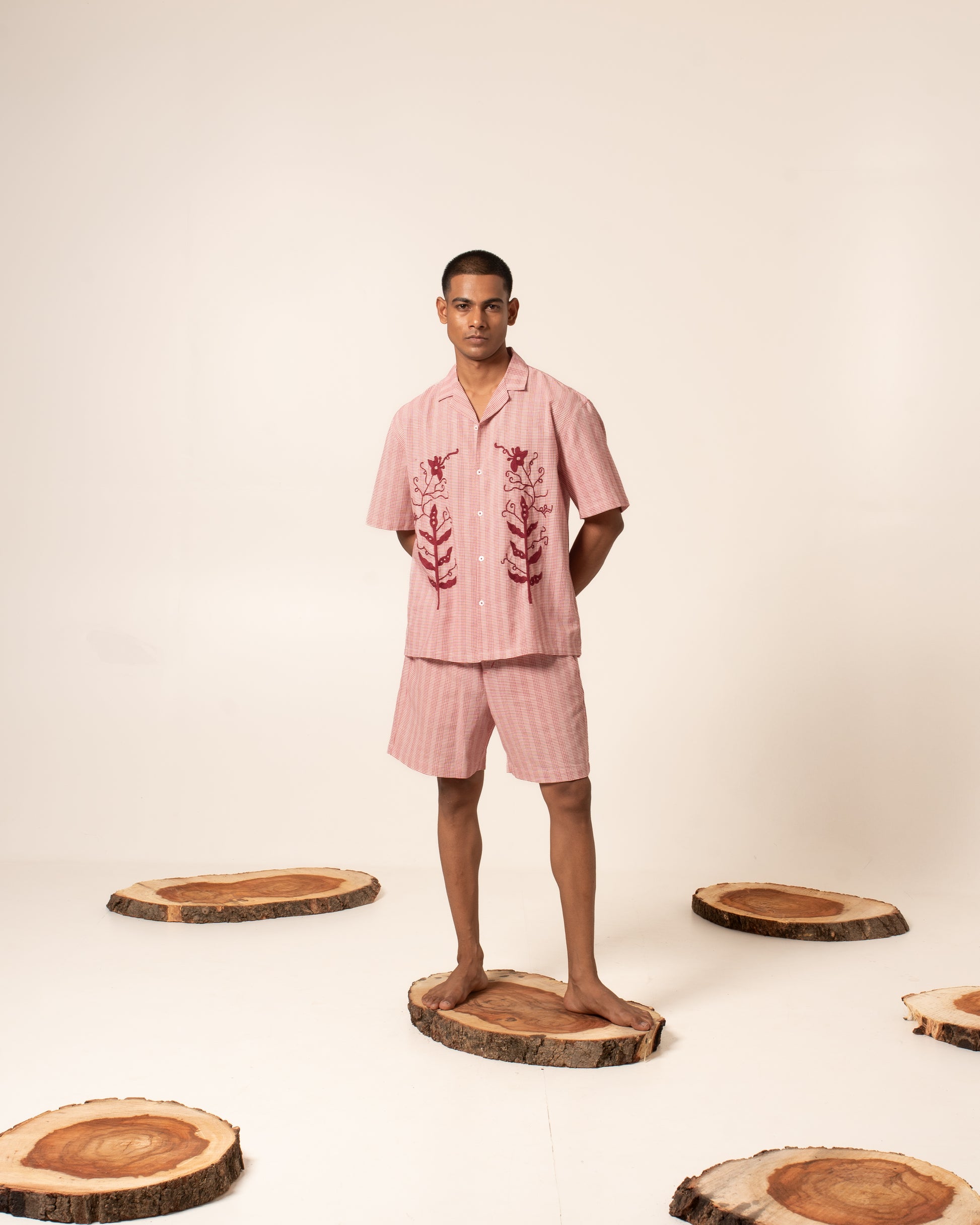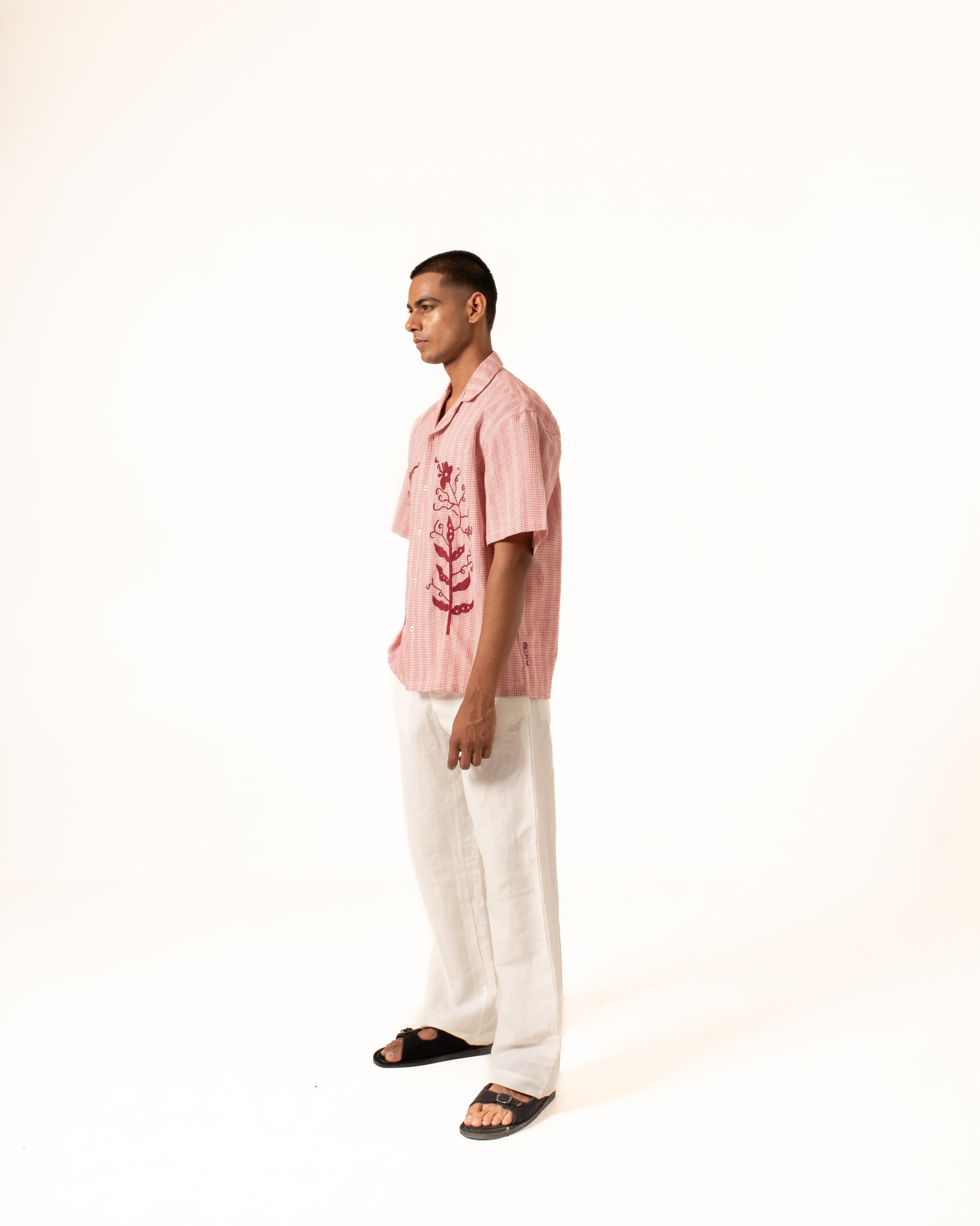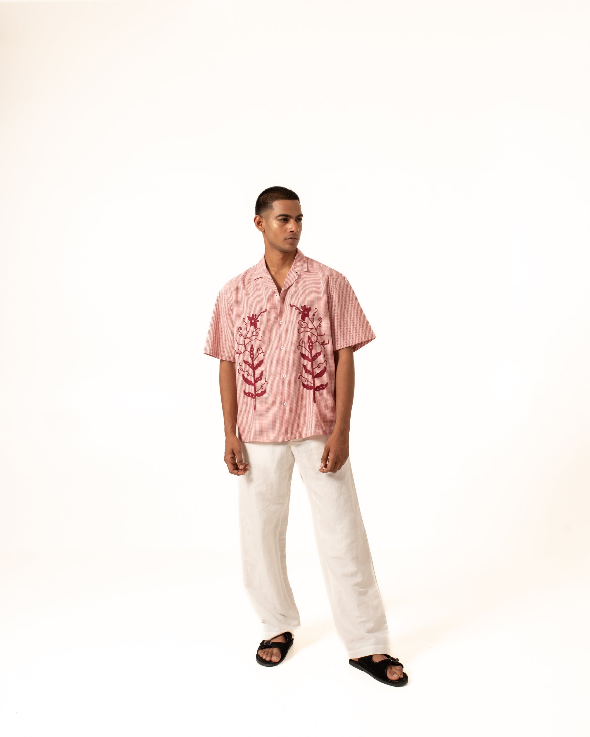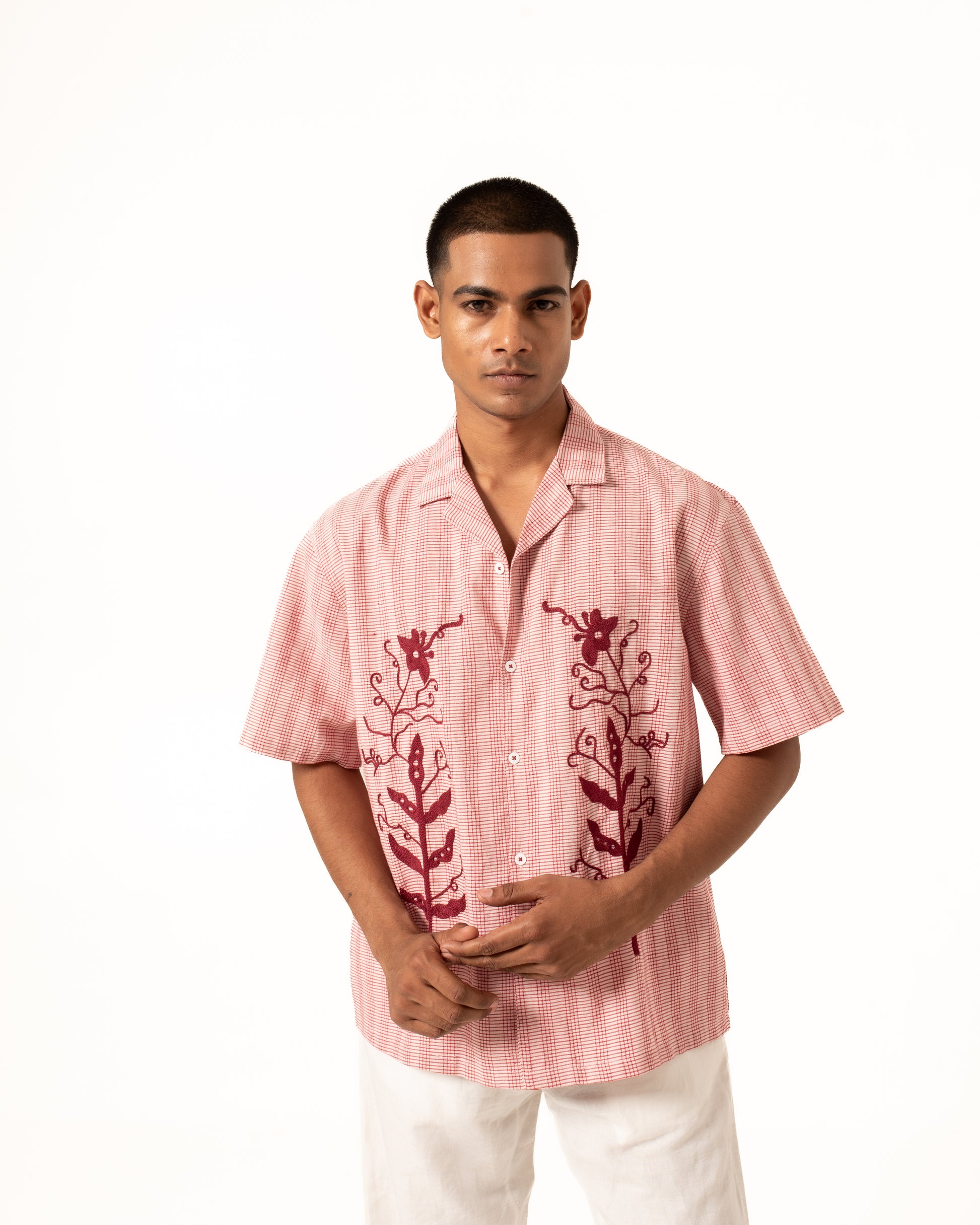 KHADI HAND EMBROIDERED BOWLING HALF SLEEVE SHIRT